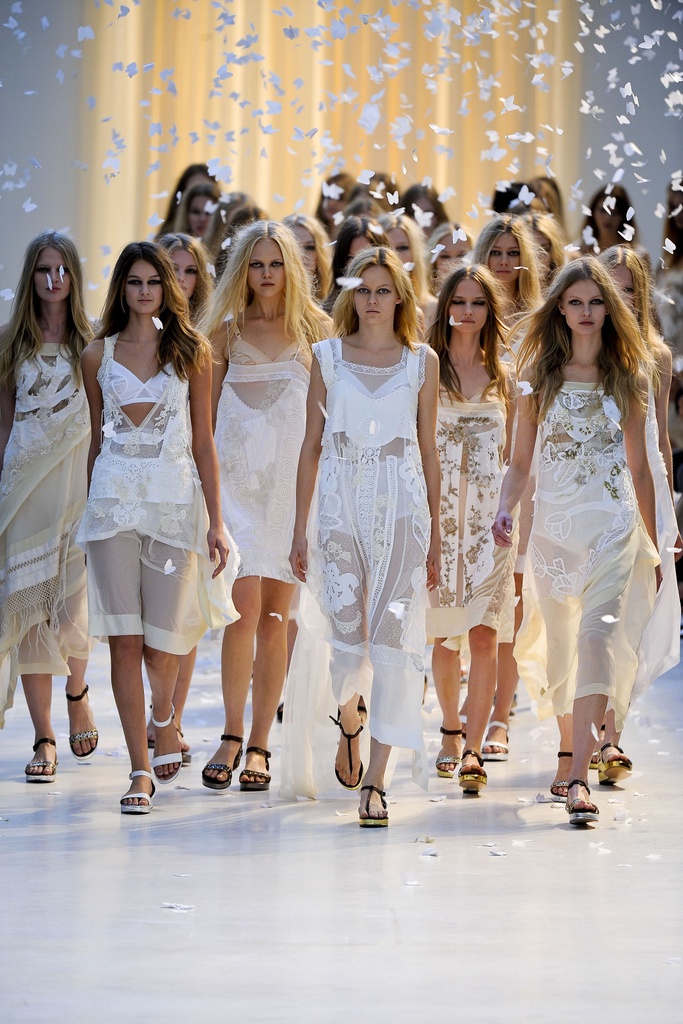 Recently I have been feelin' some trend vibezzzz for next summer. Since browsing the blogs, going to london fashion week and just simply taking note of what my gut tells me I conclude that ALL WHITE WILL BE A BIG TREND for next summer. All white outfits are all over the catwalks and it has also been creeping onto our streets with trend setters everywhere looking strangely pure in their all white combos. White is also one of those shades that always come back around as a big trend really quickly, and I have to say, I embrace it every time. I lurrve the clean effortless look white clothes express and how versatile they are- like grey and black. So, here are some examples I have collected to diminish any doubt you may still have about this trend for next summer.